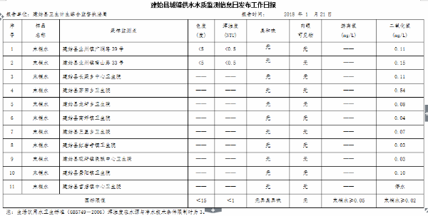 2018年1月21日建始县城镇生活饮用水监测结果公布